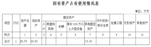 截至2021年12月31日,昆明科普中心部门资产总额28.53万元,其中,流动资产15.52万元,固定资产13.01万元,对外投资及有价证券0.00万元,在建工程0.00万元,无形资产0.00万元,其他资产0.00万元(具体内容详见附表)。与上年相比,本年资产总额增加0.69万元,其中固定资产原值无增减变化。处置房屋建筑物0.00平方米,账面原值0.00万元;处置车辆0辆,账面原值0.00万元;报废报损资产0项,账面原值0.00万元,实现资产处置收入0.00万元;出租房屋0平方米,账面原值0.00万元,实现资产使用收入0.00万元。