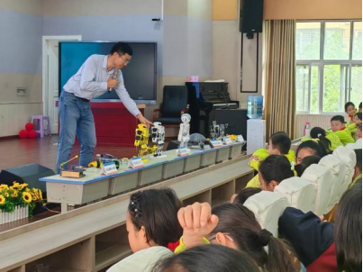 在展演环节,体操机器人、舞蹈机器人、小木琴机器人轮番登场,它们的“超能力”引得同学们聚精会神观看。讲座的高潮是“人机竞技”:同学们与 AI机器人玩石头剪刀布、与机器人比俯卧撑,现场加油声、欢呼声不断。大家不仅亲身体验了机器人技术的魅力,更在心中种下了探索人工智能的种子。