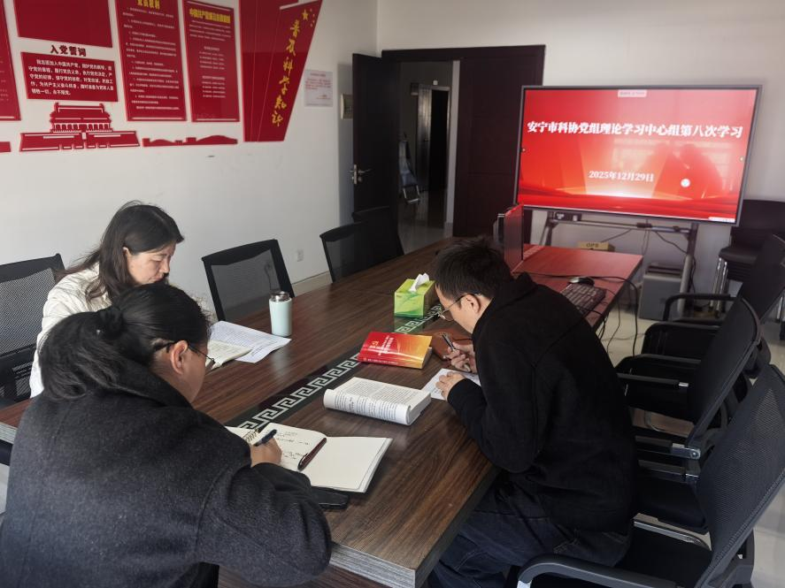 12月29日,安宁市科协党组召开理论学习中心组第八次(扩大)会议,专题学习研讨《习近平谈治国理政》第五卷,市科协党组书记、主席丁红主持学习。