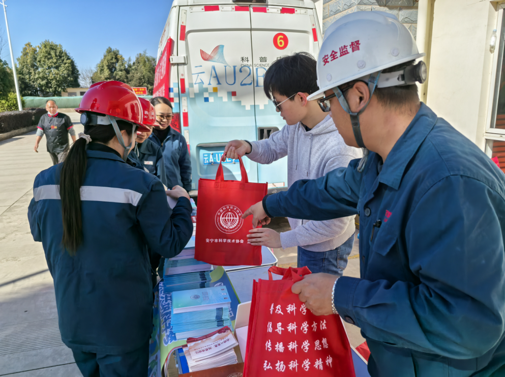 活动现场气氛热烈,科普服务精准贴心。市科协紧扣企业职工实际需求,发放了精心编制的《安宁市科普读本》《反邪教读本》《民族团结》等资料300余册,赠送了笔记本、益智魔方、围裙、购物袋等用品350余份,让科学知识融入日常生活,推动科普更接地气、更暖民心。