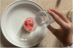 放入几滴红色色素和洗碗液