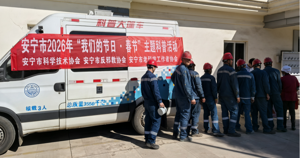 1月29日上午,安宁市科协、市反邪教协会和市老科技工作者协会走进云南昆钢嘉华水泥建材有限公司,共同举办2026年“我们的节日·春节”主题科普活动,为企业职工送去丰富的“科普年货”和诚挚的新春祝福。